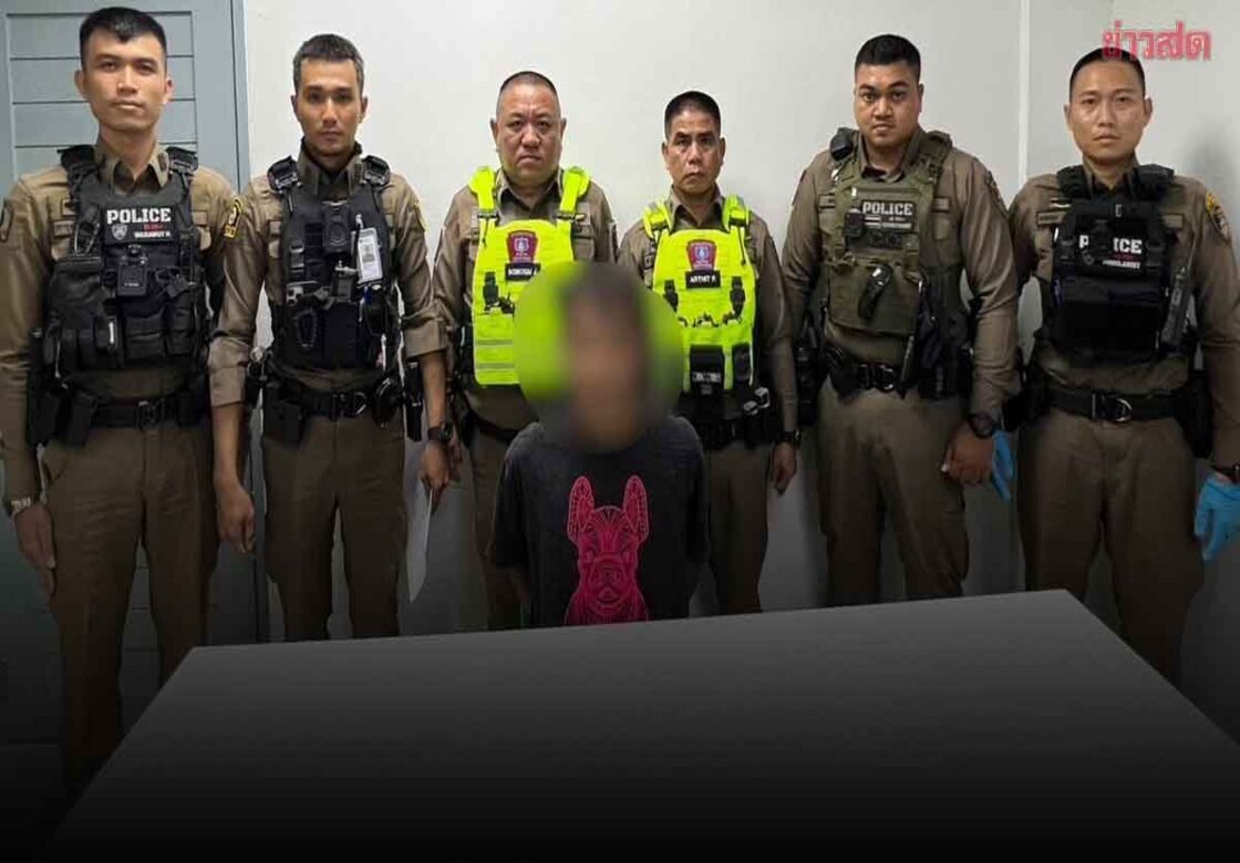 เจ้าหน้าที่ตำรวจงานสายตรวจ 2 ออกตรวจหาผู้ก่อเหตุบริเวณใกล้เคียง ตามลักษณะที่ได้รับแจ้ง จนมาถึงบริเวณถนนพระราม 1 เชิงสะพานกษัตริย์ศึก สังเกตเห็นผู้ต้องสงสัยมีลักษณะการแต่งกาย เสื้อยืดสีดำมีลายตุ๊กตาสีชมพู สวมกางเกงขาสั้นสีดำ ปั่นจักรยาน สีขาว ตรงตามลักษณะที่ศูนย์วิทยุผ่านฟ้าแจ้งมา และสังเกตมีคราบเลือดบริเวณแขนซ้าย