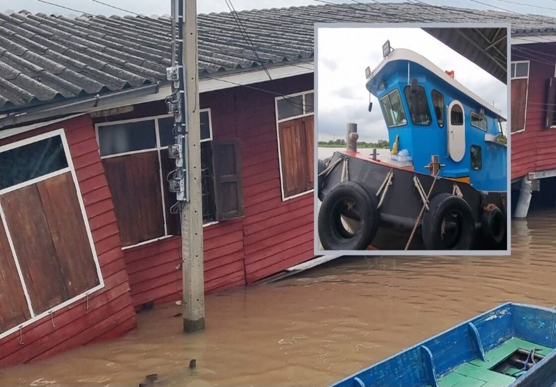 ระทึกเจ้าพระยา เรือพุ่งชนบ้านริมแม่น้ำ เสียหาย 3 หลัง ผู้ว่าฯนนท์ สั่ง เจ้าของเรือ เร่งเยียวยา-จ่ายค่าเสียหาย