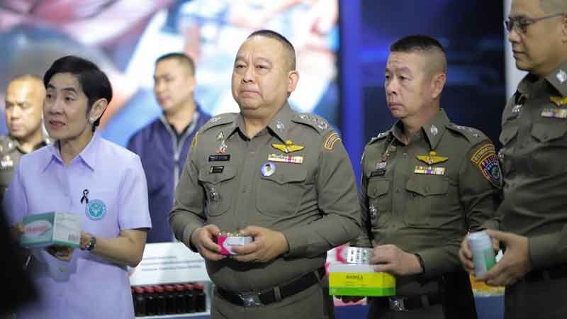 วันที่ 16 ธ.ค.2568 ที่บช.ก. พล.ต.ท.ณัฐศักดิ์ เชาวนาศัย ผบช.ก. พร้อมด้วย และเจ้าหน้าที่ กก.4 บก.ปคบ. ร่วมกับ กระทรวงสาธารณสุข โดย ภญ.สุภัทรา บุญเสริม เลขาธิการคณะกรรมการอาหารและยา แถลงปฏิบัติการทลายเครือข่ายจำหน่ายยาเขียวเหลือง ยาแก้ไอ ตัดวงจรน้ำกระท่อมมอมเมาเยาวชน ในพื้นที่ จ.ชลบุรี จ.สมุทรปราการ จ.สิงห์บุรี และกทม. ตรวจค้น 10 จุด ยึดของกลางกว่า 300 รายการ มูลค่ากว่า 20 ล้านบาท จับกุมผู้ต้องหา 1 ราย